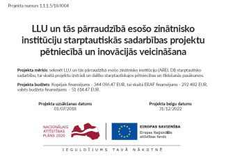 Ar 2018. gada 1. jūliju ir uzsākts projekts “LLU un tās pārraudzībā esošo zinātnisko institūciju starptautiskās sadarbības projektu pētniecībā un inovācijās veicināšana”.