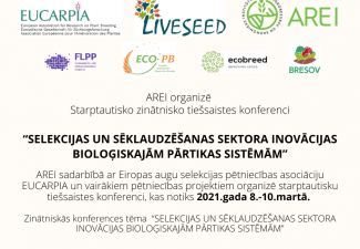 Agroresursu un ekonomikas institūts sadarbībā ar Eiropas augu selekcijas pētniecības asociāciju EUCARPIA un vairākiem pētniecības projektiem organizē starptautisku tiešsaistes konferenci, kas notiks 2021.gada 8.-10.martā.