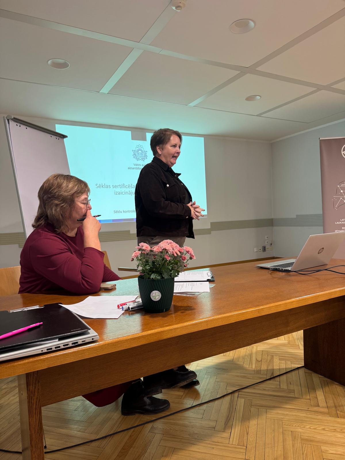 16. oktobrī ZM telpās notika projekta kārtējais seminārs, kurā tika risināti jautājumi, vai esam gatavi atteikties no atļauju izsniegšanas ne - bioloģiskas sēklas izmantošanai. Šobrīd ar Latvijā saražoto bioloģiski sertificētas sēklu var apsēt pavisam nelielu daļu no sējplatības. Vai veiktie pētījumi par šķirņu piemērotību palīdzēs zemniekiem izvēlēties atbilstošākās šķirnes un arī saražot bioloģisko sēklu? Šādus jautājumus projekta dalībnieki apsprieda kopā ar VAAD, Zemkopības Ministrijas, Sertificēšanas institūciju un ieinteresēto asociāciju pārstāvjiem. Diskusijas bija ļoti aktīvas, arī ierosinājumi, kā situāciju uzlabot, tika izvirzīti un pārrunāti.