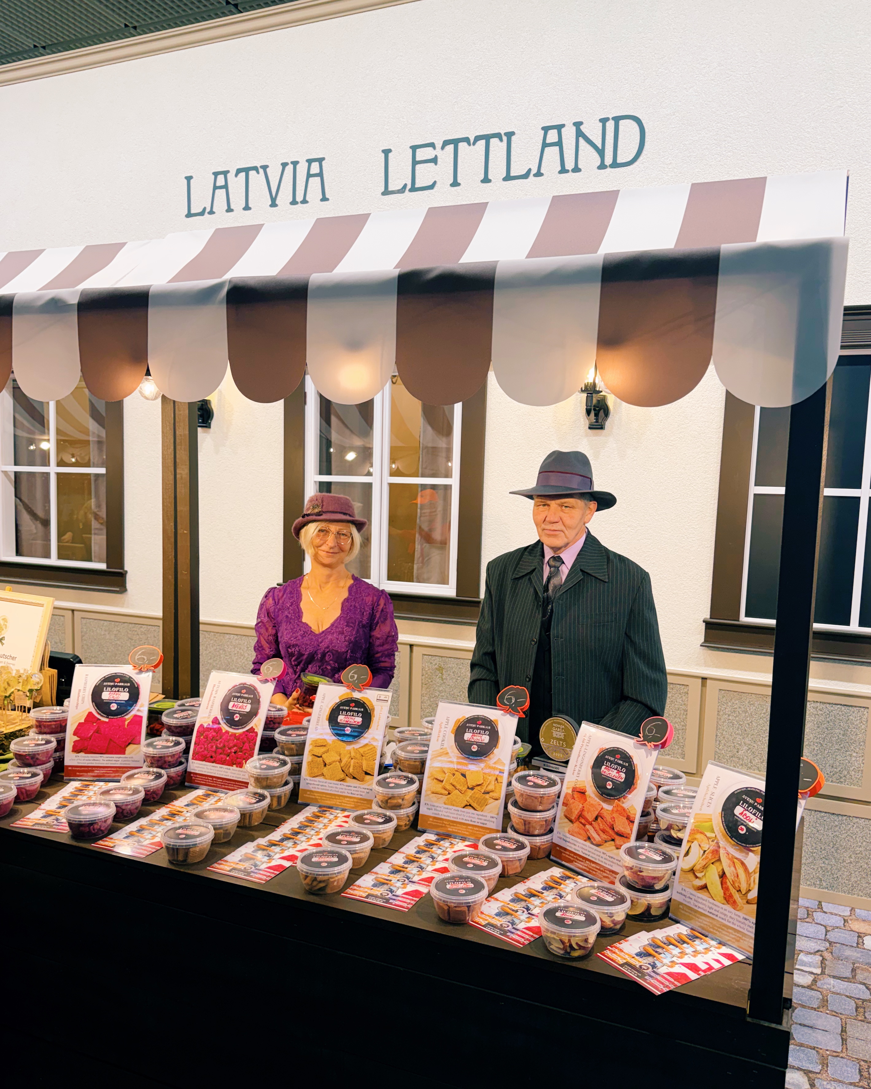 Stenda saturisko kodolu veido Latvijā ražota produkcija ar skaidru izcelsmi un kvalitātes apliecinājumu, kas atspoguļo Latvijas lauksaimniecību kā mūsdienīgu, ilgtspējīgu un starptautiski konkurētspējīgu nozari, kur tradīcijas savienojas ar inovācijām un dizainu. Ekspozīcijā piedalās ražotāji, tostarp: “Aveņu Park(a)s” sublimētās ogas un augļi, “Lauskis” vīni, Harija Kalēja dzintara un sudraba rotas, Antras Kalējas pinumi no kārklu šķeltām klūgām, “Saules sveces” sveces, “Kalnu medus” produkti, Agneses Milbergas “Daba rada” karameles ar kaltētiem ziediem un ogām, “Meža veltes” dzērvenes pūdercukurā, “Brīvais vilnis” zivju konservi, “Sierštelle” sieri, “Lāči” maize un grauzdiņi, “Rūdolfs” krēmi un ievārījumi, fermentēts Melnais ķiploks, “Čaklā bite” biškopības produkti un “Rēzeknes gaļas kombināts” meža gaļas produkti. Stenda atmosfēru papildina jūgendstila laikmeta iedvesmota mūzika, kā arī stenda personāls autentiskos jūgendstila stila tērpos. Īpašajā pieņemšanas telpā izveidots pilnvērtīgs jūgendstila interjers, kas paredzēts oficiālām tikšanām un starptautiskām sarunām.